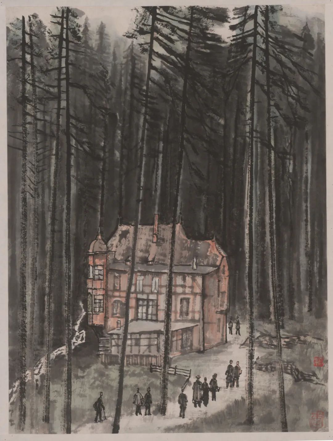 1956年,再次去南方作了历时长达七八个月的水墨写生活动。1957年,出访德国,40多天里,用对景落墨方式画了一批令围观的德国人也惊讶:“想不到这个地方竟有这么好”的水墨风景作品。