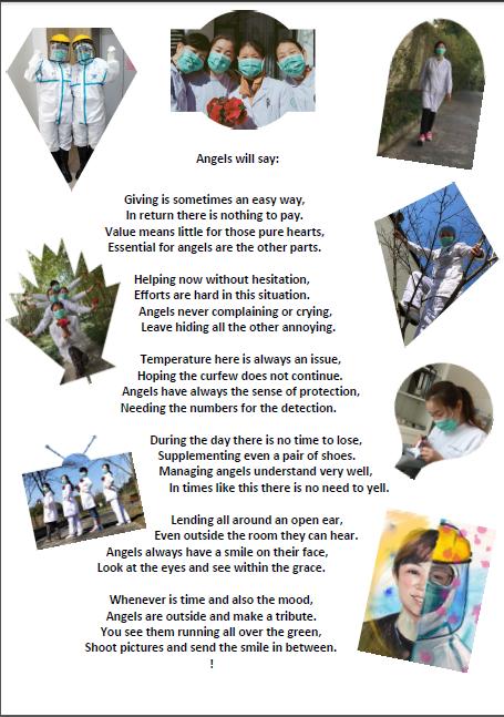 作为一名神经内科医生,李瑞霞深知医学观察人员心理卫生及健康的重要性。因而她与同事们时常思考各种办法来活跃气氛,比如写打油诗、唱歌、折纸飞机等等。李瑞霞的搭档王蓉还会帮助她在纸飞机上涂上色彩,一起折纸花等等。在得知李瑞霞已在隔离点工作一个多月,家中还有两个孩子时,暖心的Andy关心起了孩子的近况。他还扮演着“开心果”的角色,由于医学观察点的工作十分紧张忙碌,为了缓解大家的压力,他教大家在没有吹风机的情况下如何把头发吹干、用拼音拼出打油诗、在群中用普通话朗诵诗句等等,总是让大家忍俊不禁。他也会经常创作诗文发在群中,因此他也得到了一个昵称:隔离点的“莎士比亚”。