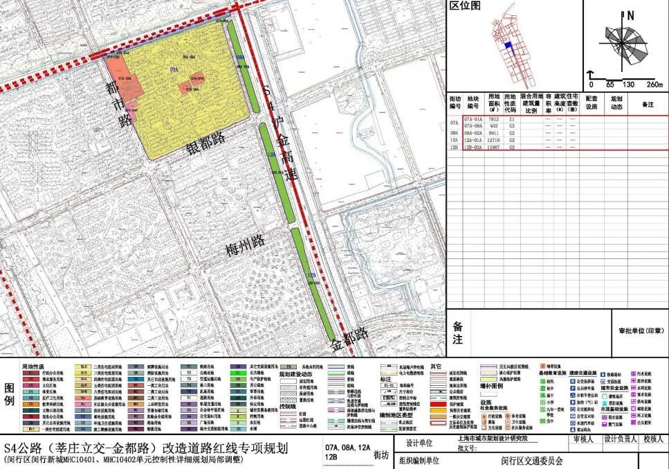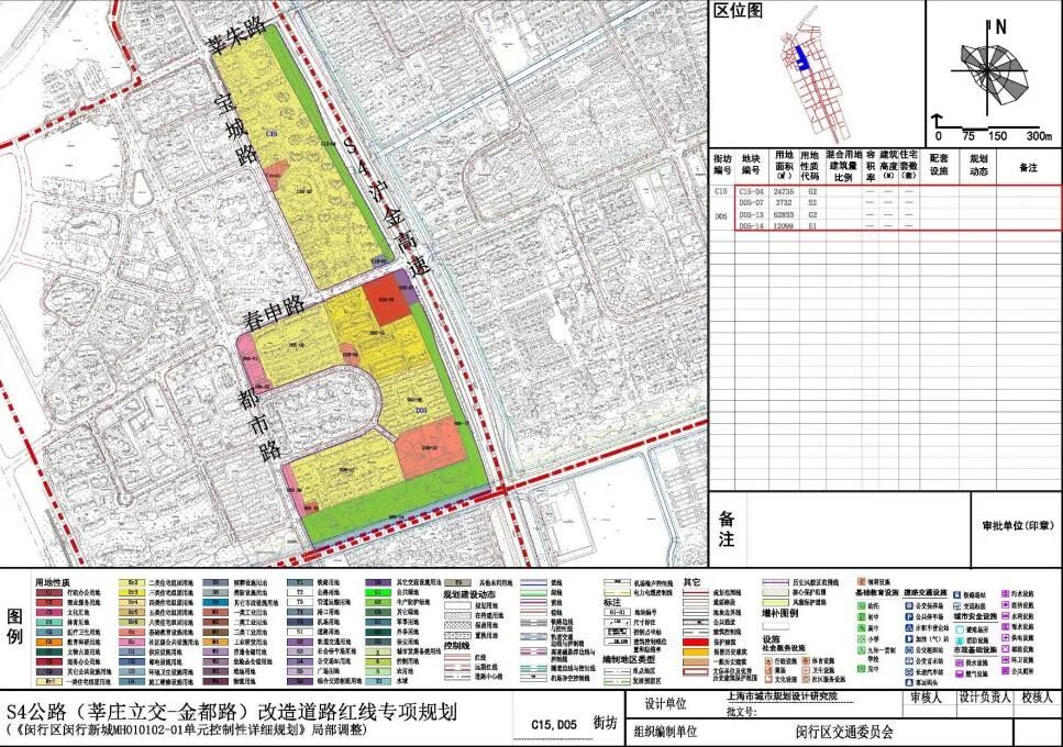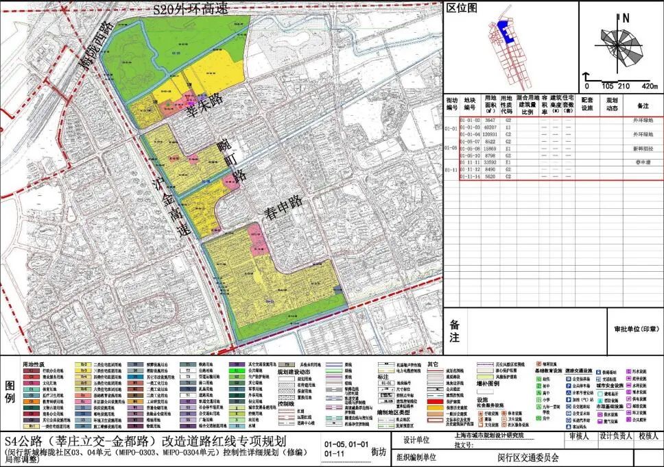 结合S4公路(莘庄立交—金都路)改造道路红线调整方案,对沿线相关用地进行规划调整。