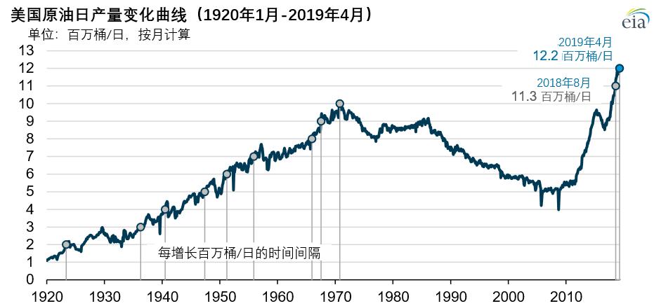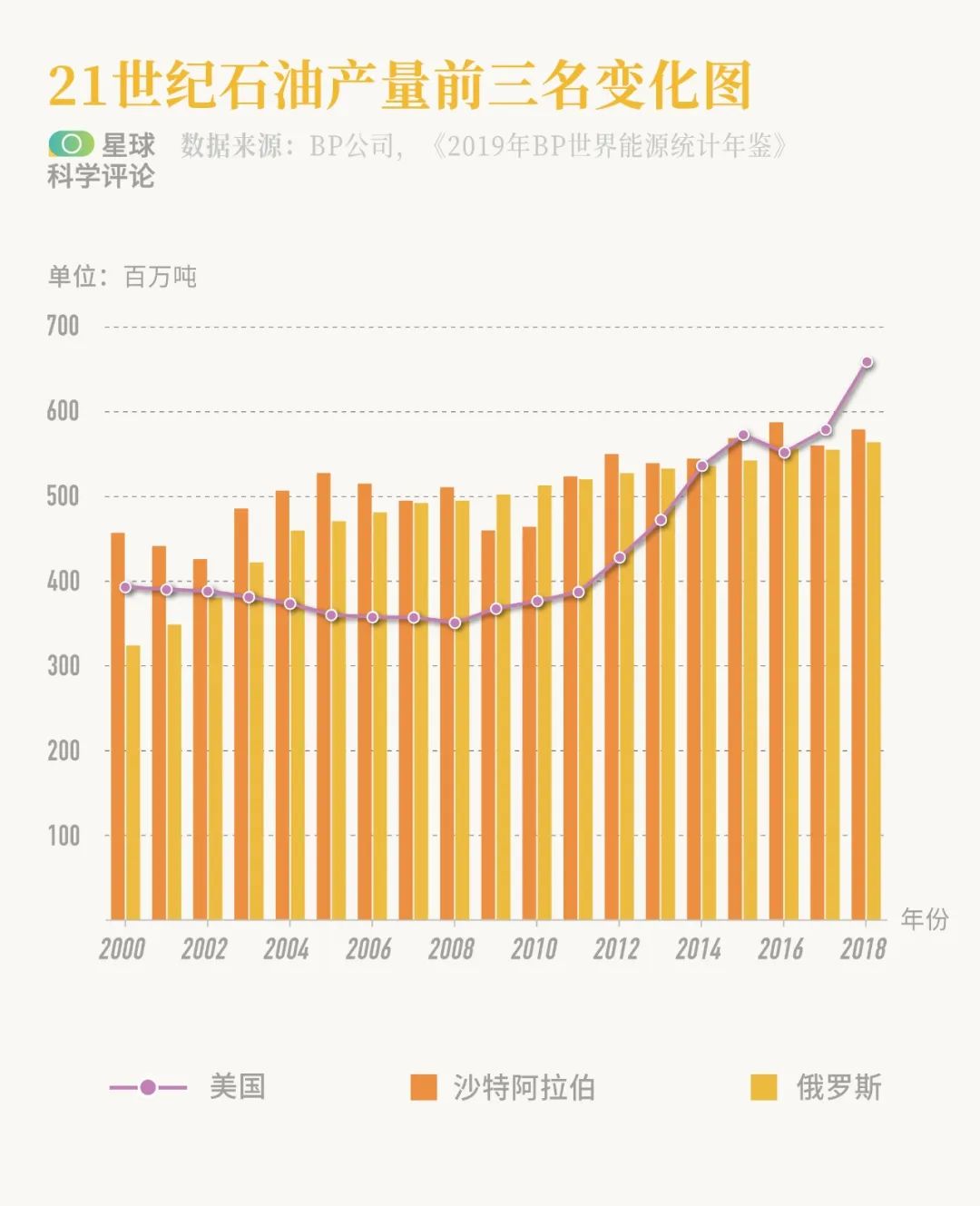 此后,美国石油产量保持6.7%的年均速率快速增长,日产原油量至2018年时翻了2倍,变成10.96百万桶/日[1],超过沙特阿拉伯,成为世界第一石油生产国。