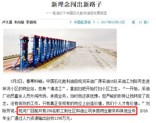 [15] 中国能源报. 新理念闯出新路子——低油价下中国石化胜利油田发展探密, 2017-03-13. (http://paper.people.com.cn/zgnyb/html/2017-03/13/content_1757377.htm)