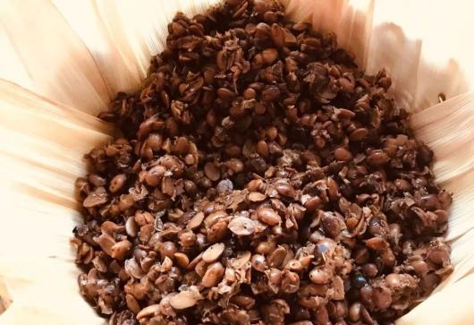 吃的时候,用一点凉开水泡一些,莱州人管这个步骤叫“下豆酱”,加上一点味精和香菜末,蘸芽葱或者直接就苞米稀饭,十分对味儿。吃不了的可以直接晒成“豆酱核(gu,去声)”,也就是豆豉,等到春天就着馒头吃也十分好吃。若用辣椒油、芝麻粒一泡,再加上一点干煸的肉丝,就成了超市里卖的很贵的红油豆豉了。