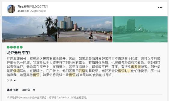 评论区里,人们七嘴八舌地吐槽着芽庄的俄罗斯味。