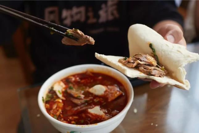 羊肉不仅能独挑大梁,也是打辅助的好手,比如和各色主食搭配来吃。最知名的是羊肉泡馍。到陕西乃至西北各省,绝不能错过这最地道的美味。一张馍掰成黄豆大小,乍一看内容简单,其实能吃出无限风味。泡馍吃时并不搅动,而是绕着碗边蚕食。急性子不如去吃水盆羊肉,一张半发面的月牙馍,可泡汤可夹菜,最痛快的还是用筷子捞出碗里的大片羊肉,绝对值得一试。