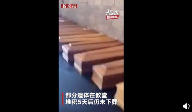 许多因新冠疫情去世的死者来不及火化下葬,教堂就变成了临时的停尸间。