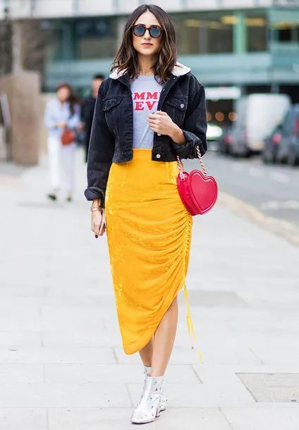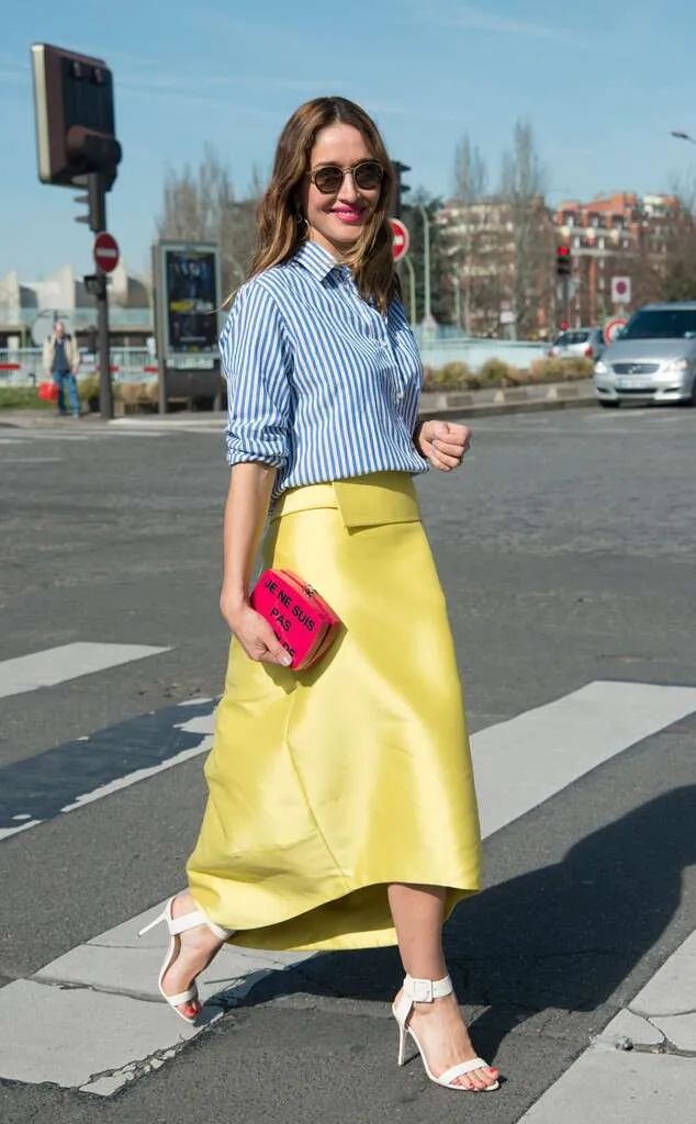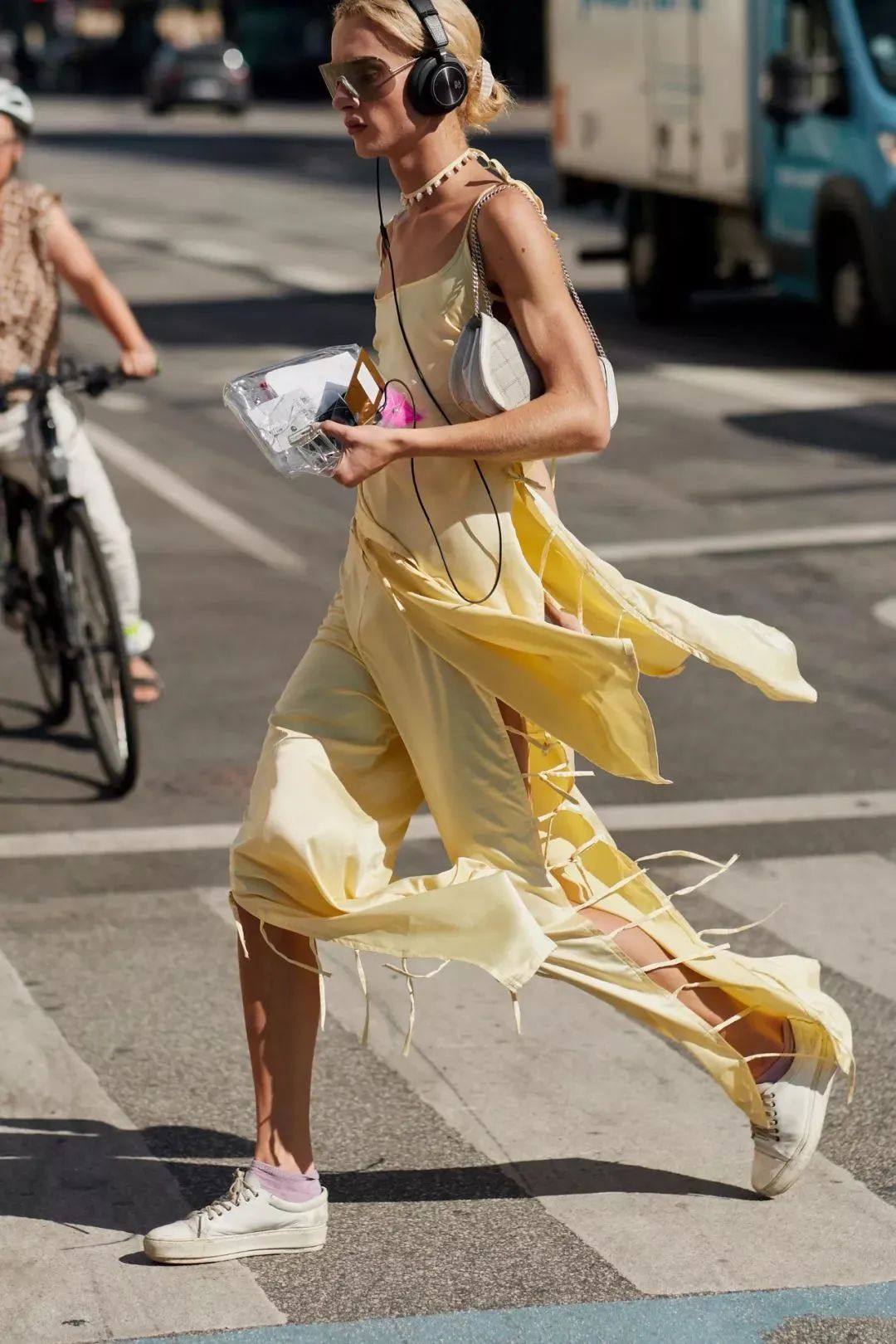 “淡黄”相对而言更适合亚洲人,只要搭配得当,还是很容易穿好看的。图片所限,我们今天就用黄色裙子的街拍图来举例,重点来讲讲如何搭配。