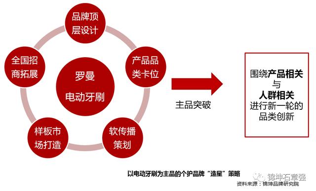 我国牙刷市场的年消费量达到30亿支,而电动牙刷不足千万,可迭代空间大。国人更换牙刷的频率也提高到了每半年一次,部分地区更达到了牙医倡导的三月一次,可迭代机会多。护齿理念快速普及,新生代消费者购买力逐渐增强,使得电动牙刷得到越来越多人群的关注。通过捕捉消费者的痛点、痒点、兴奋点,匹配系统化可落地的战略战术营销方案,让罗曼品牌与电动牙刷品类形成强相关关系。主品突破后,再可围绕产品相关与人群相关进行新一轮的品类创新,实现品牌与规模的升级。