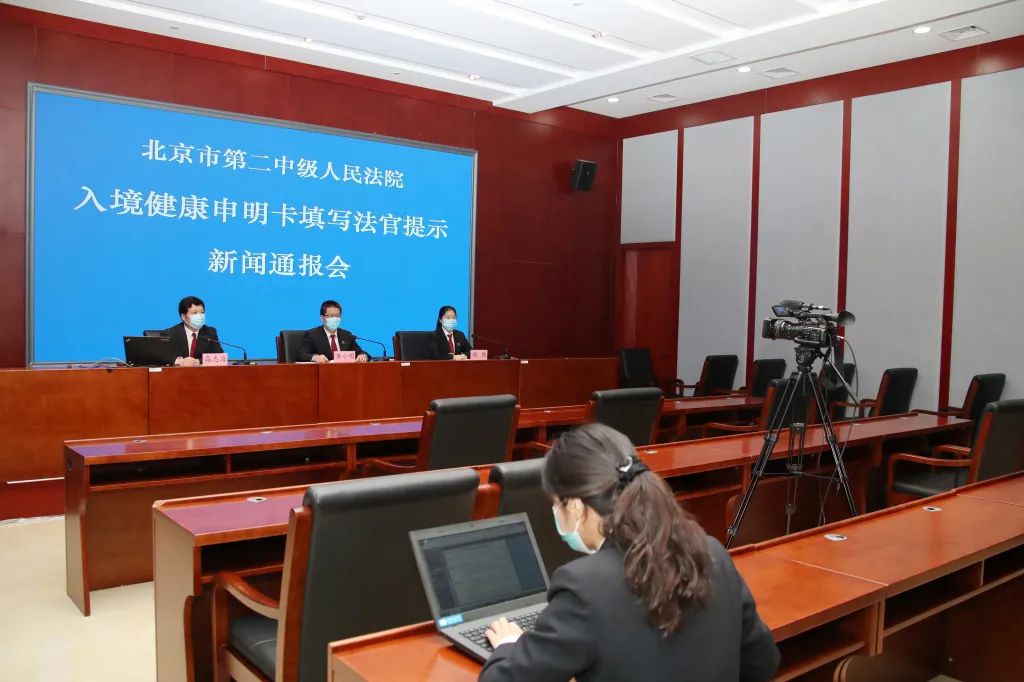 当前,我国本土新冠肺炎疫情防控形势持续向好,生产生活秩序加快的态势不断巩固和拓展,但国外疫情形势复杂严峻,国际疫情快速蔓延带来的输入性风险大幅增加,外防输入形式更加严峻。北京作为国际交流中心,已经成为防控境外疫情输入的主战场。根据我国出入境管理相关规定,所有出入境人员必须进行健康申报,入境人员须如实申报健康状况和旅行经历等。为从法律层面向社会大众介绍入境人员填报健康申明卡的重要性,健康申报涉及的法律问题并作出提示,二中院专门召开了此次新闻通报会。