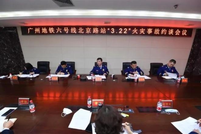 3月31日,广州市消防安全委员会办公室(简称“市消安办”)成立约谈小组,召开广州地铁六号线北京路站‘3·22’火灾事故约谈会议,对广州地铁集团有限公司有关人员进行询问与建议。