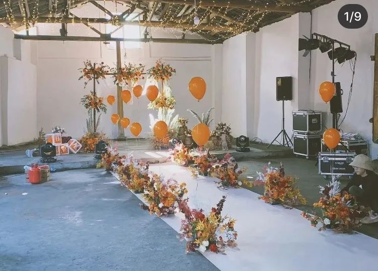把墙壁刷干净,打扫干净地面,让屋顶的禾草配合星星灯带自然垂落,铺上地毯挂上气球和鲜花,内味儿就出来了: