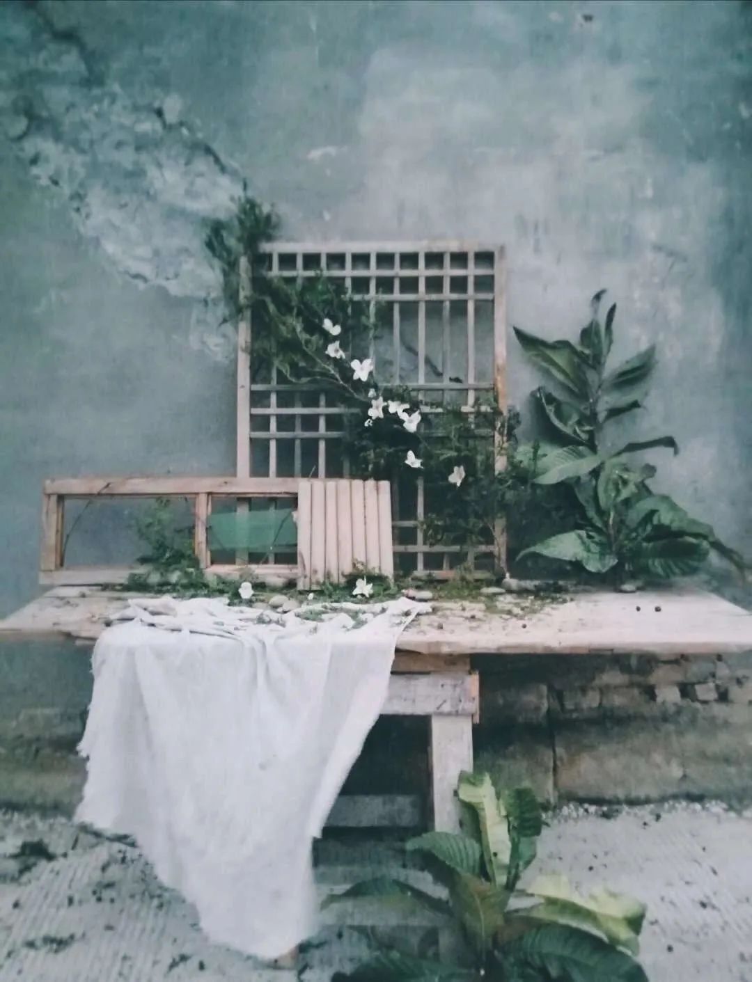 废弃的破旧木头门框窗户框是简单又出彩的装饰物,加上绿植装点,说的北欧风也行,怀旧复古风也行: