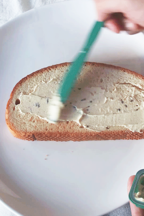 平平无奇的一块烤土司,一旦抹上了酱料,立马变得不一样了。着重推荐一下“奶油芝士抹酱”搭配“黑巧克力脆珠”,甜甜的奶油芝士中和了黑巧克力的苦味,整个味道有些奇妙。