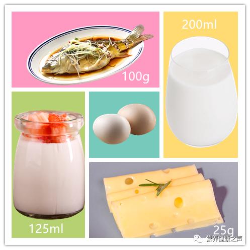鼓励每日摄入适量的牛奶,酸奶和奶酪等乳制品。每周至少食用两次鱼类和海鲜食品。