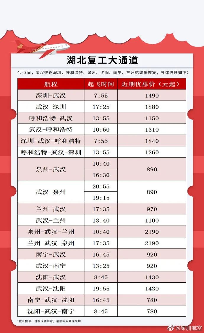 除东航之外,截至发稿时,已有多家航司提前公布武汉航线的复航计划。不完全统计如下: