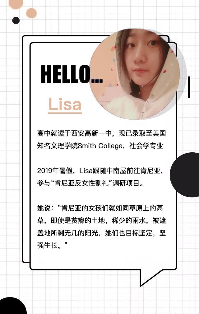 我叫Lisa,来自西安。是话痨,神经大条,时而感性,爱胡思乱想,有点同情心,还有一丢丢想拯救世界的英雄主义。