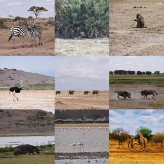 人生中第一次Safari在安博塞利国家公园。我看见了顶着头打斗的角马;看见了身上站着一只小白鸟的大象;看见了带着宝宝散步的河马妈妈;看见了撒开腿奔跑的鸵鸟;看见了树林掩映中的长颈鹿;看见了张开血盆大口的狮子;看见了没有住在假山上的猴子;看见了随处迁徙的火烈鸟……