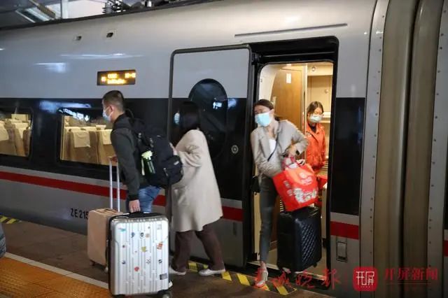 8日从武汉到达云南的旅客达520多人,首趟抵达昆明的动车G1525次上就有200多人。