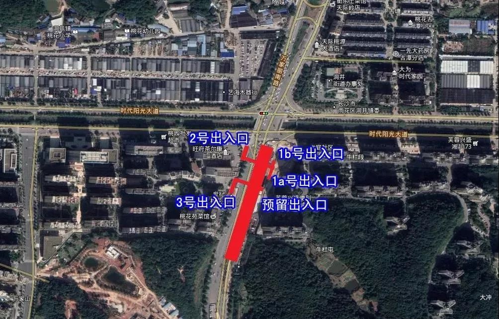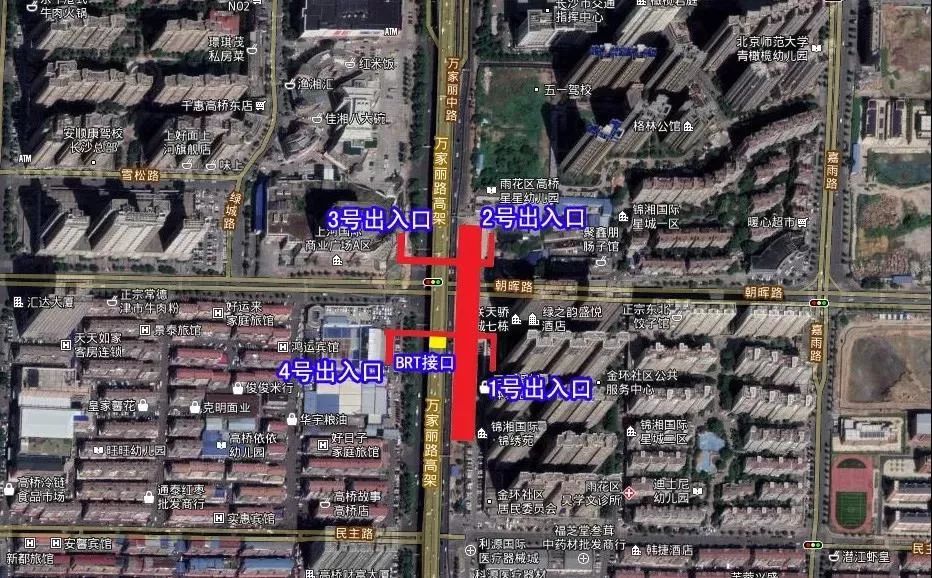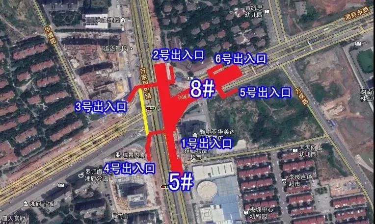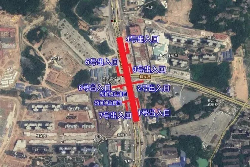 位于湘龙路与万家丽路交叉路口南侧,规划有4个出入口。