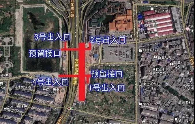 位于福元路与万家丽路交叉路口,属于星沙和开福区交界站点,规划有4个出入口。