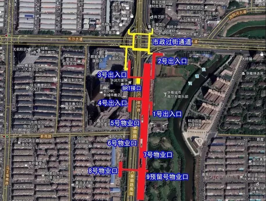 位于长沙大道与万家丽路交汇处南侧,沿万家丽路南北布置,高桥大市场南侧,华雅高尔夫俱乐部西侧。规划有4个出入口。