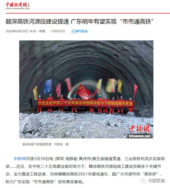 3月25日至26日,中央电视台《新闻联播》《新闻直播间》等栏目先后对中铁十六局集团承建的赣深高铁广东段横岭隧道贯通进行报道。该隧道是赣深高铁广东段首座贯通的7000米以上双线长大隧道,洞身穿越6条破碎断裂带,围岩稳定性极差,地质复杂,最浅埋深仅10米,地下水丰富,存在突水突泥等风险。该隧道的如期贯通,为2021年赣深高铁建成通车创造了良好条件,新华社、经济日报、广东卫视等多家媒体给予了关注报道。国房屋建筑和市政基础设施工程