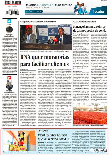 3月28日,安哥拉国家媒体《安哥拉日报》报道了中铁二十局集团助力万博省疫情防控隔离医院建设的消息。该医院建筑面积超过400平方米,拥有31个病房和40张床位。报道称,万博省长乔安娜·丽娜在参观该工程后,对中铁二十局集团的施工质量和进度表示赞扬。矿业企业ECSA支援厄瓜多尔卫生紧急状态