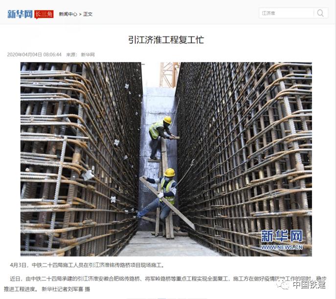 4月3日,新华社等媒体刊发了中铁二十四局集团承建的引江济淮安徽合肥铭传路桥、将军岭路桥等重点工程实现全面复工,在做好疫情防控工作的同时,稳步推进工程进度的报道。防疫复工两不误