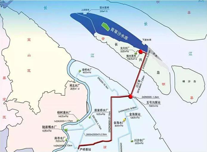 青草沙水源地建成后,上海为了解决崇明岛居民和西南五区居民的优质供水问题,又相继在崇明岛和黄浦江上游建设了东风西沙水库和金泽水库。