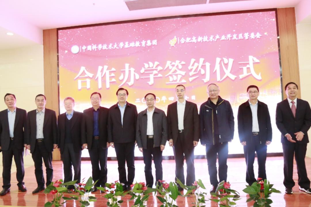 4月10日,合肥高新区管委会与中国科大基础教育集团在合肥高新区管委会1楼(B座)多媒体室,举行合作办学签约仪式,标志着合肥高新区与名校合作办学又迈出崭新一步。合肥市政府副秘书长吴昌文;合肥市教育局党委委员、副局长王勇;中国科学技术大学党委常委、校长助理傅尧,中国科大基础教育集团主任兼科大附中校长马运生;合肥高新区工委书记、管委会主任宋道军,合肥高新区工委委员、管委会副主任方向民,合肥高新区工委委员、纪检监察工委书记孟凡农,合肥高新区工委委员、管委会副主任曹效记,以及合肥高新区工委、管委会各部门负责人,各中小学校负责人参加仪式。