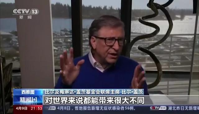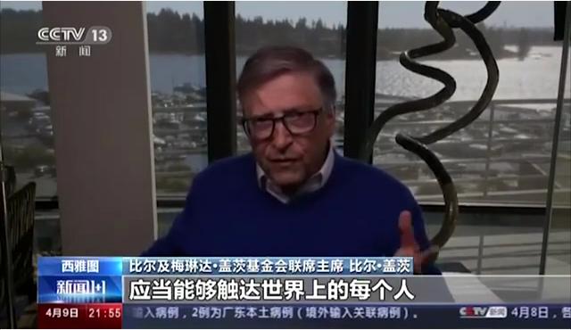 在4月9日晚的央视《新闻1+1》节目中,主持人白岩松专访美国盖茨基金会联席主席比尔·盖茨。
