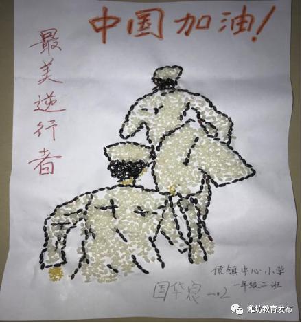 侯镇中心小学融综合实践课与爱国主义教育为一体的线上教学开展得有声有色。学生与家长一起构思、创作,用家里现有的大米、小米、黑豆、绿豆等小小的种子,粘贴出“最美心愿”。一年级2班的国华宸、魏国昊同学分别和妈妈粘贴出了“最美逆行者”“我爱你中国”的美丽图案,表达了“最美的心愿”:希望她(他)们都能平安回家,希望祖国更加繁荣昌盛!