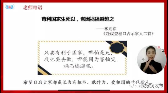 组织抗疫故事课题研究,开发爱国主义教育微课。组织教师开展抗疫故事课题研究,为如何在聋生中开展线上教育、思政教育等开拓新思路。组织开发抗疫故事微课程,积极利用好抗疫英雄人物,形成聋校思政教育微课程——《思政教师五堂课:亲爱的孩子,老师有话对你说》。学校还组织一系列教学教研活动,开展爱国主义课例展评、课程征集等,促进爱国主义教育见实效。