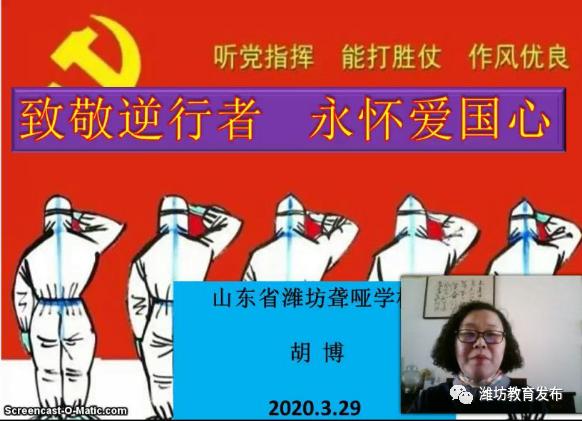 潍坊聋哑学校在师生中扎实开展深入、持久、生动的爱国主义教育,着力通过颂扬先进形象、打造有效载体、营造浓厚氛围、利用重要仪式等途径传播战“疫”精神,砥砺爱国奋进。
