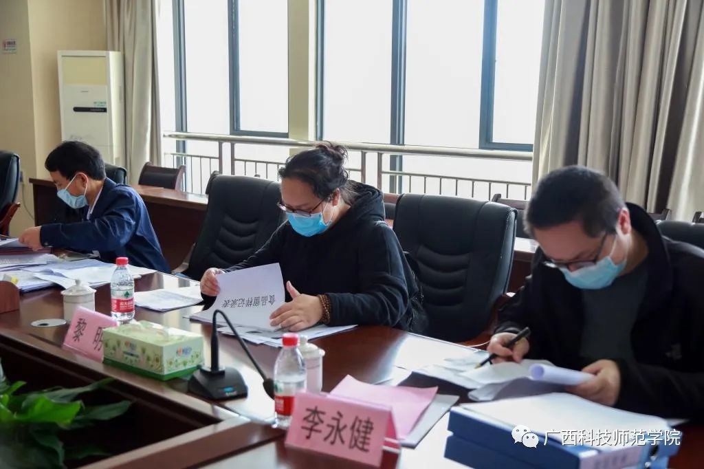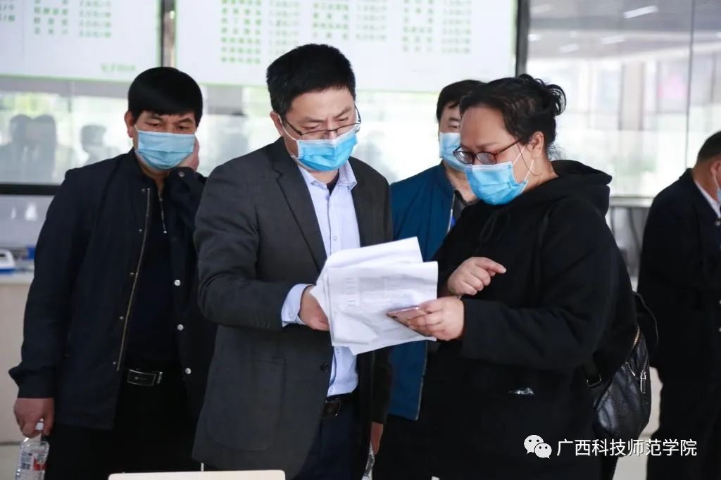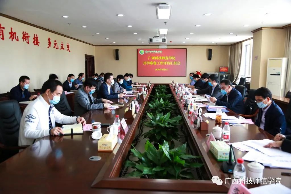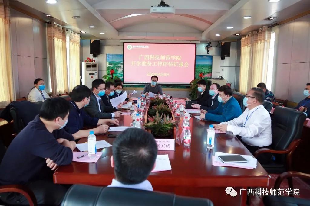 4月9日,来宾市高校开学评估组组长、来宾市人民政府副秘书长孙明,副组长、市疾控中心主任姜新宁,副组长、市教育体育局副局长罗韦斌等8人组成的来宾市高校开学工作评估组到我校开展开学准备评估工作。学校领导张鹏、吴江萍、陈翔、蓝海、梁梅、李栋学、胡国强,校长助理宋启军以及学校新冠肺炎疫情防控领导小组指挥部各小组负责人参加会议。