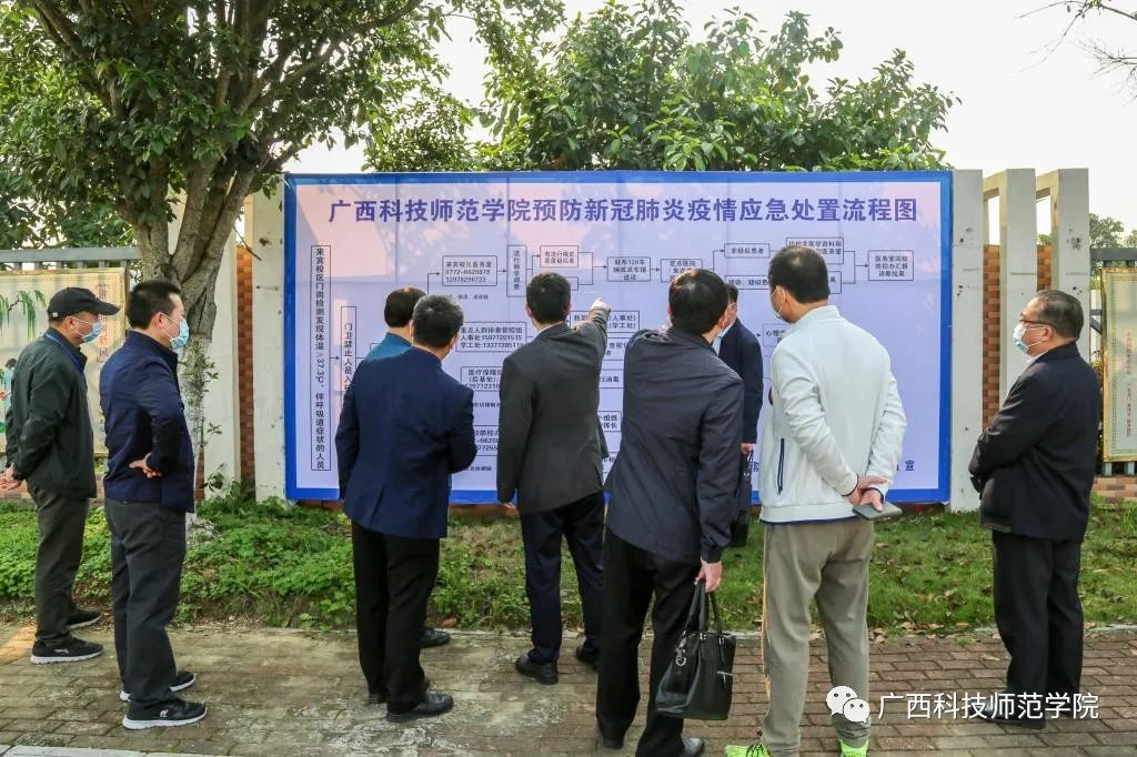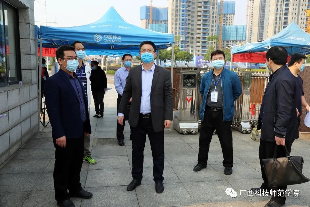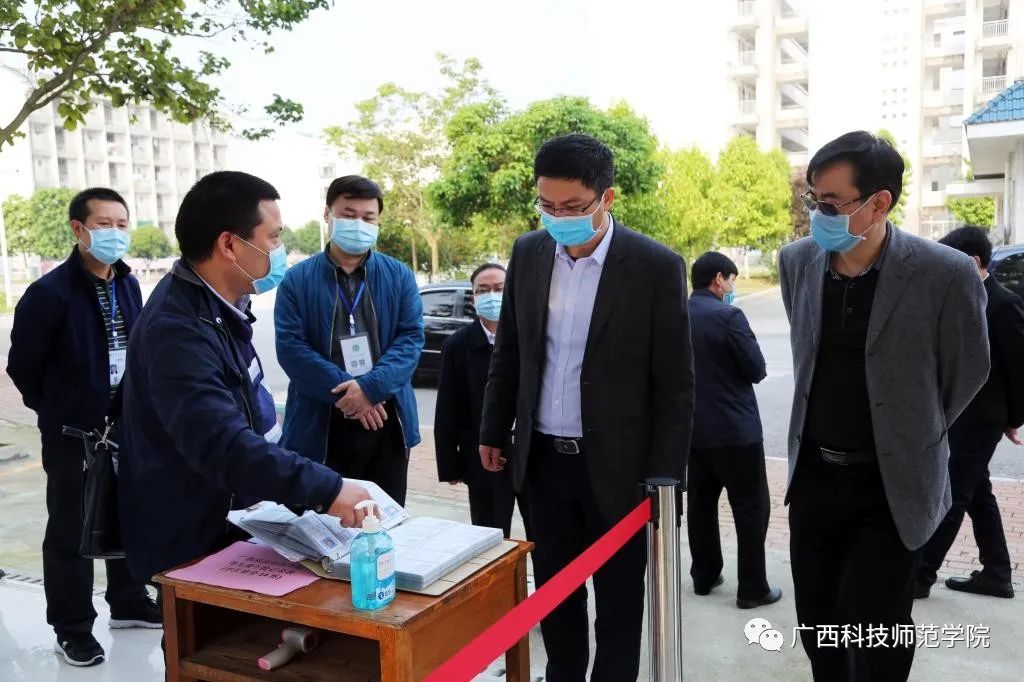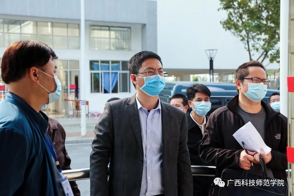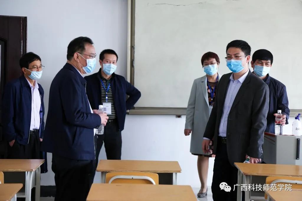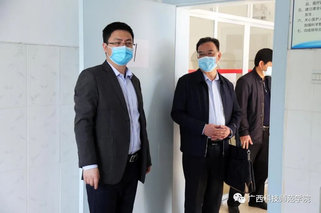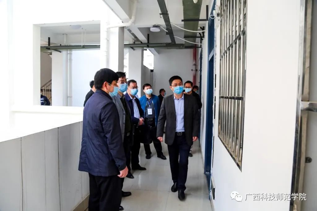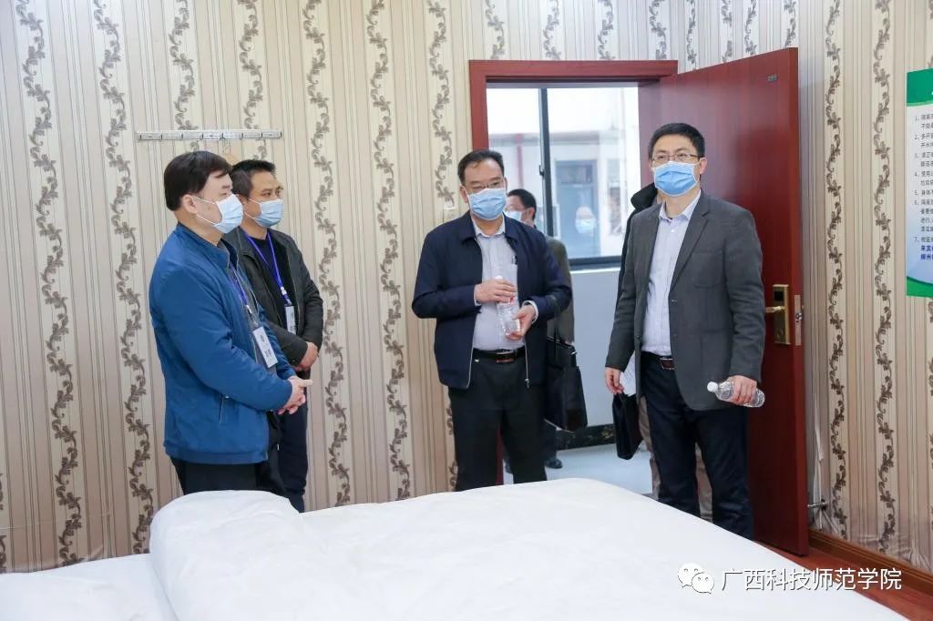 孙明副秘书长一行先后实地检查了我校来宾校区、柳州校区的校门测温点、学生宿舍、校卫生院、隔离观察区、食堂、防疫物资储备仓库、教室,认真查看了开学准备工作材料,详细了解学校在疫情防控和开学筹备工作的情况。