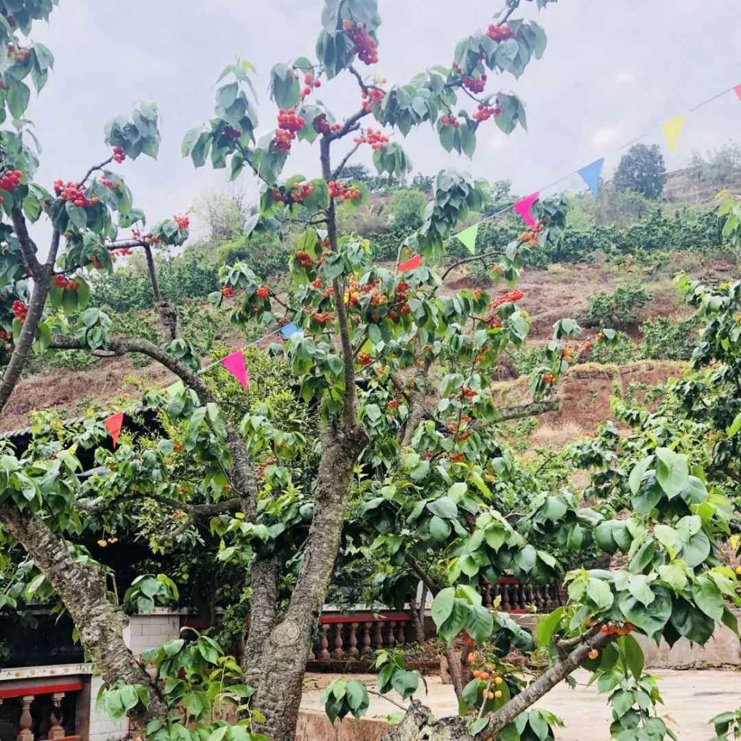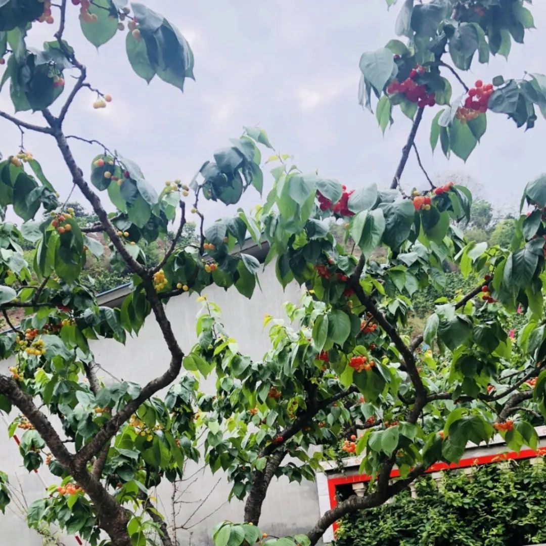 大约45分钟车程后,他们到达了简阳贾家樱桃沟,稍作休整后便开始参观樱桃园、免费品尝新鲜的樱桃。