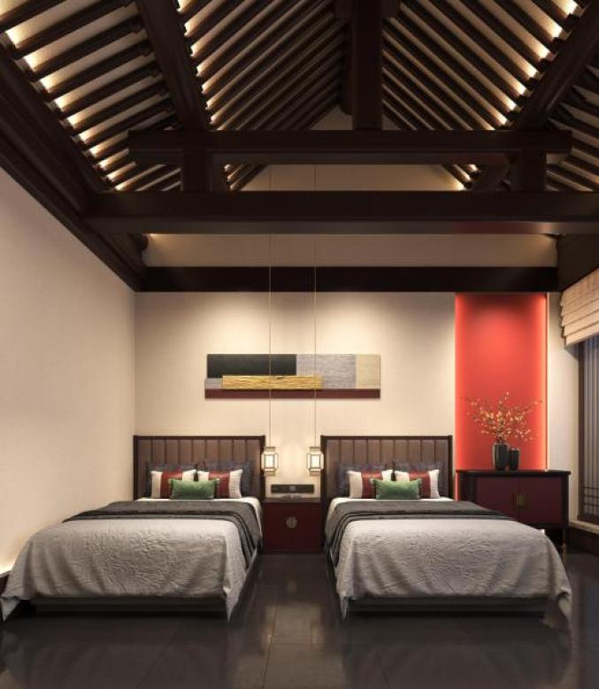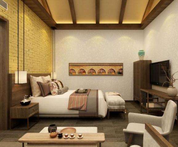 定襄主题院落集旅游、文化、特色以及餐饮、住宿为一体,以新中式装饰风格,融合蒙山文化的历史文化气息,展现出了主题院落独有的气质与魅力,