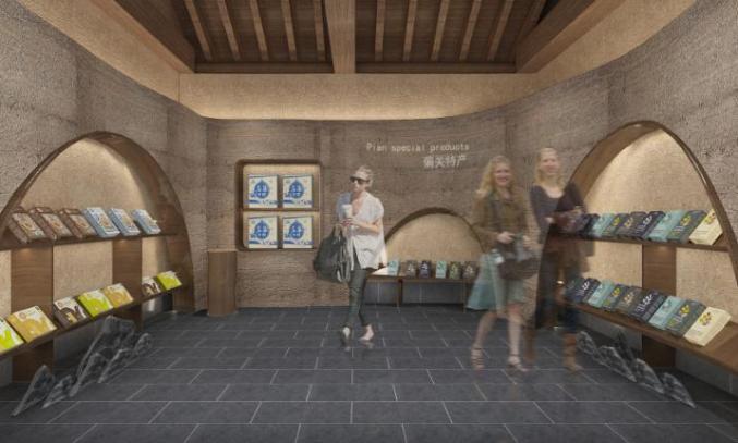 保德县主题院落以中式调侃诙谐的文艺气质风格设计,并结合保德县黄河土窑洞建筑风格,以及渡口文化、砖窑院落建筑元素等内容为依据。