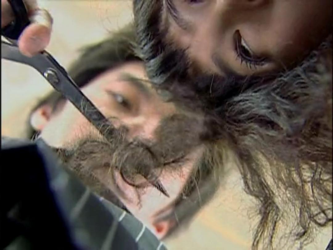 一开场,女主金三顺不小心撞到男主身上,头发缠在了男主衣服扣子上怎么也解不开。