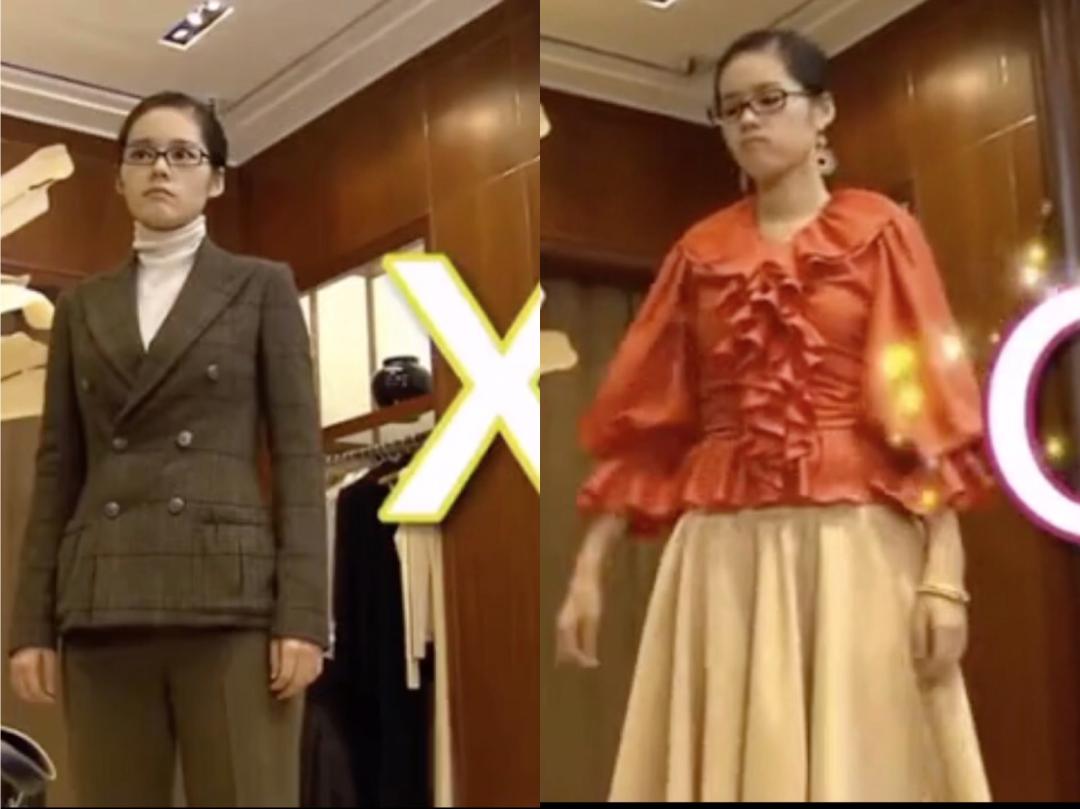 请看,左边是改造前,幼熙自己的chic风格,右边是被男主改造后的大丽花成精。