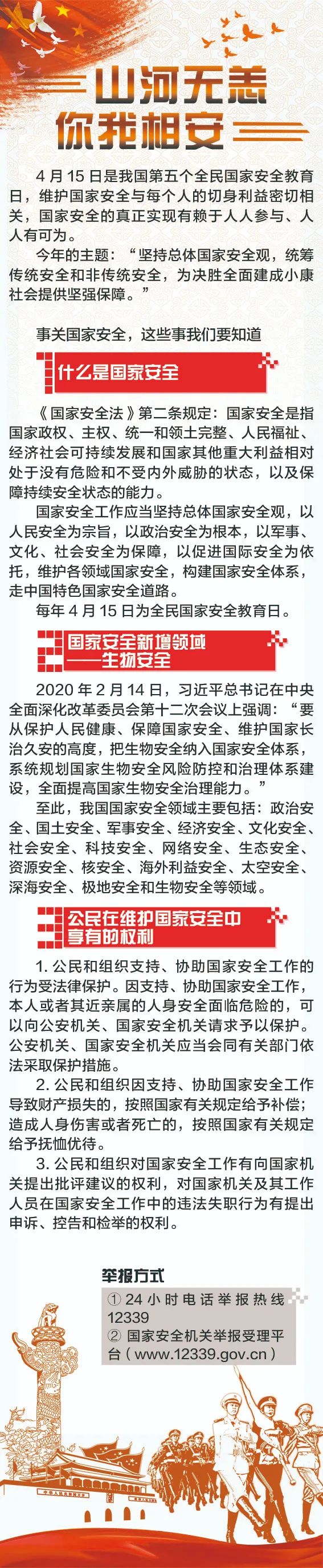以全民国家安全教育日为契机,切实增强国家安全意识,夯实国家安全的社会基础,是我们共同的责任。