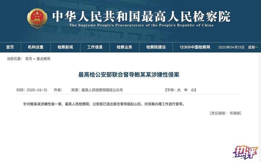 “鲍某明涉嫌性侵养女”事件引发持续关注。目前,最高人民检察院、公安部已派出联合督导组赴山东,对该案办理工作进行督导。烟台市公安局芝罘区分局4月9日通报,2019年10月对该案再次立案后,进行了大量调查取证工作,侦查仍在进行中。