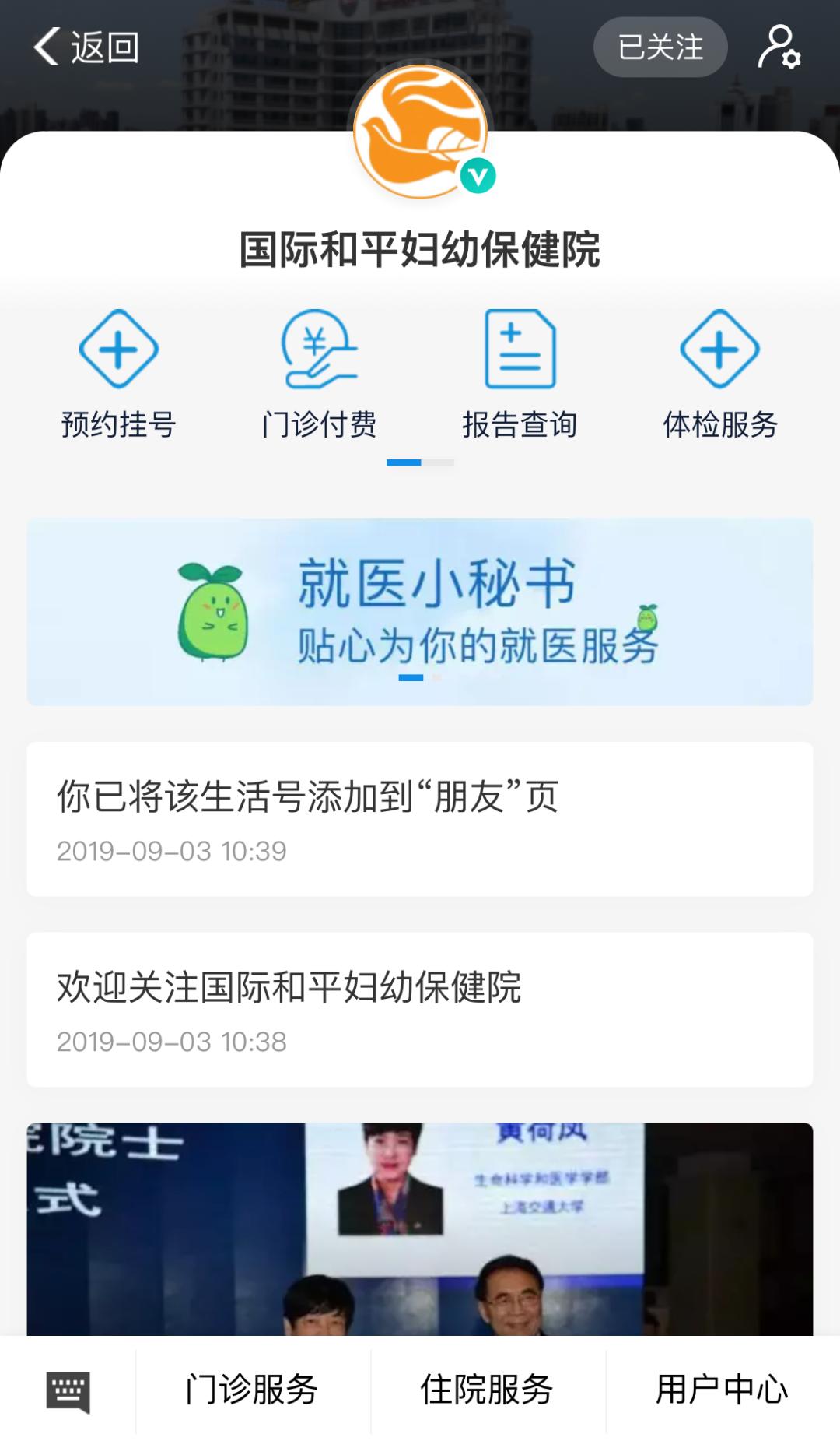 识别以下二维码,关注微信公众号“国妇婴掌上医院”或支付宝生活号“国际和平妇幼保健院”,选择“预约服务”即可。