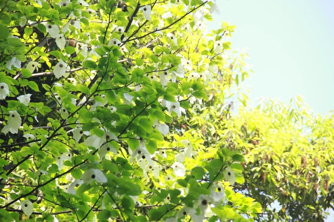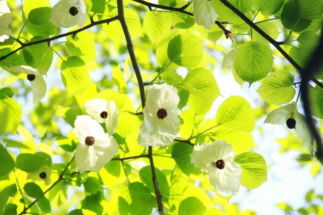 它就是:枝头飞舞的白鸽——国宝级植物珙桐。宽大的叶片嫩绿清新,满树洁白的苞片犹如栖息在枝头的一群白鸽。偶尔春风吹过,又如白鸽展翅欲飞,尽显自然灵动之美!
