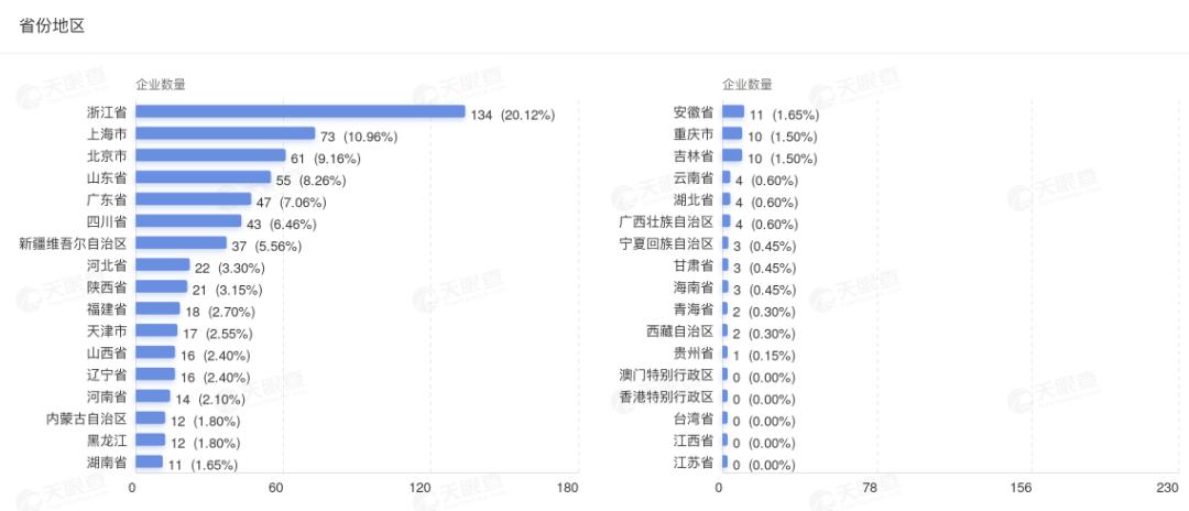 据天眼查专业版数据显示,从今年2月1日起至4月15日,整整两个半月内国内与影视制作相关的公司注销数高达666家。其中浙江省有134家影视公司被注销,占比最高,达20.12%,上海、北京、山东、广东等地的注销公司紧随其后。