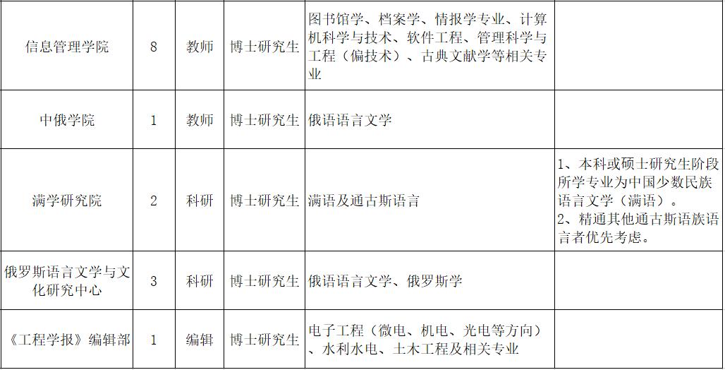 黑龙江大学2020年引进人才计划表