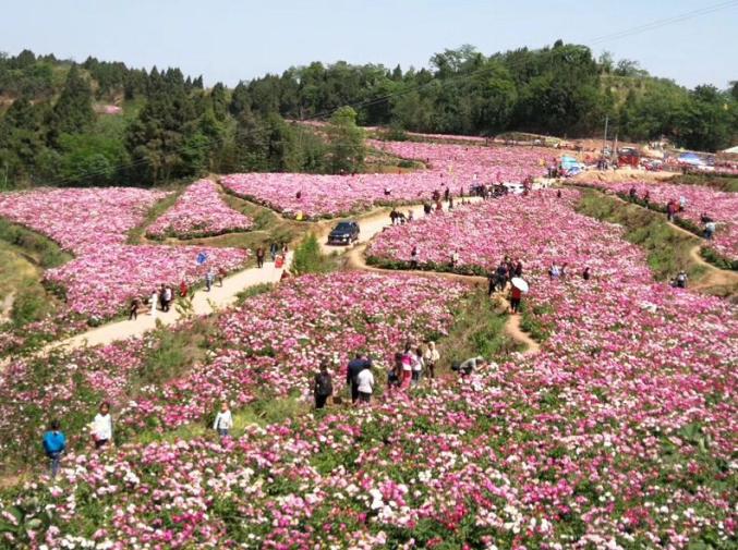 龙门山底下的玫瑰花海,因为小众,显得花谷更像不知世事的仙境。