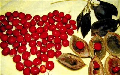 红豆树种子被誉为地球上最美的心形种子。它色艳如血,形像一颗跳动的心脏,质地坚硬如铁,常年不腐不烂,也被称为“植物红宝石”,可制作工艺品及装饰品。此外,其根与种子可入药。其根性平,味苦,有小毒。中医用来杀虫、拔毒、排脓,可治疥疮顽癣、痈疽肿毒等。我国学术界还发现红豆树的根有清热解毒之效,可用来医治乳痛、肝炎、咽炎等多种疾病。
