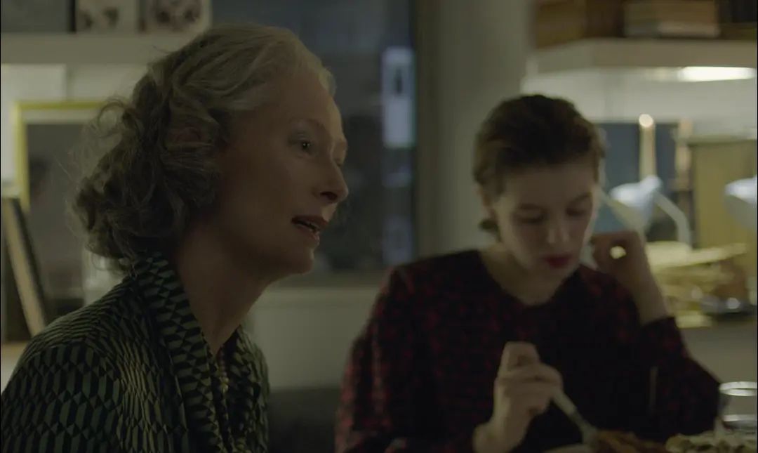 另外镜像当然也包括蒂尔达和奥诺这对戏内外的母女关系。这些镜像的呈现固然是导演安设的,但我不确定她做此安排是为了创造一些拍摄上的设计感,还是有意指向关于电影与现实某种镜像关系的元电影探讨。我个人倾向认为是前者,因为其前作《展览会》中也出现了类似的拍法。不过就算意图是后者,这些镜像元素出现在影片中更多的还只是服务了拍摄,并没有利用好这些镜像做出一些指涉电影与现实的隐喻性探讨。