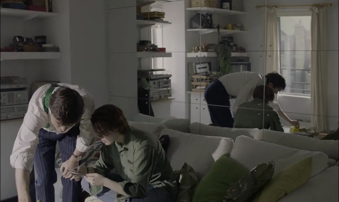 其次,电影中运用了大量镜面用于延拓固定镜头的空间——这种方式在霍格的前作中并没有如此频繁。而镜子本身就足够符合“脆弱又精致”的中产阶级本性了,更不用说它在容纳人物肖像时或扭曲、或颠倒、或压抑的诸多形象功能。